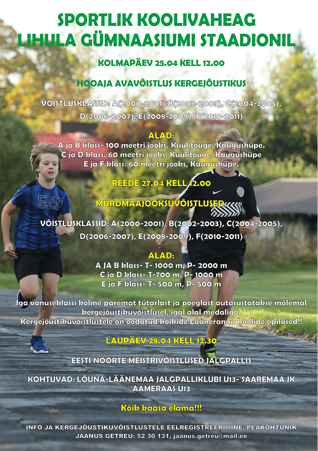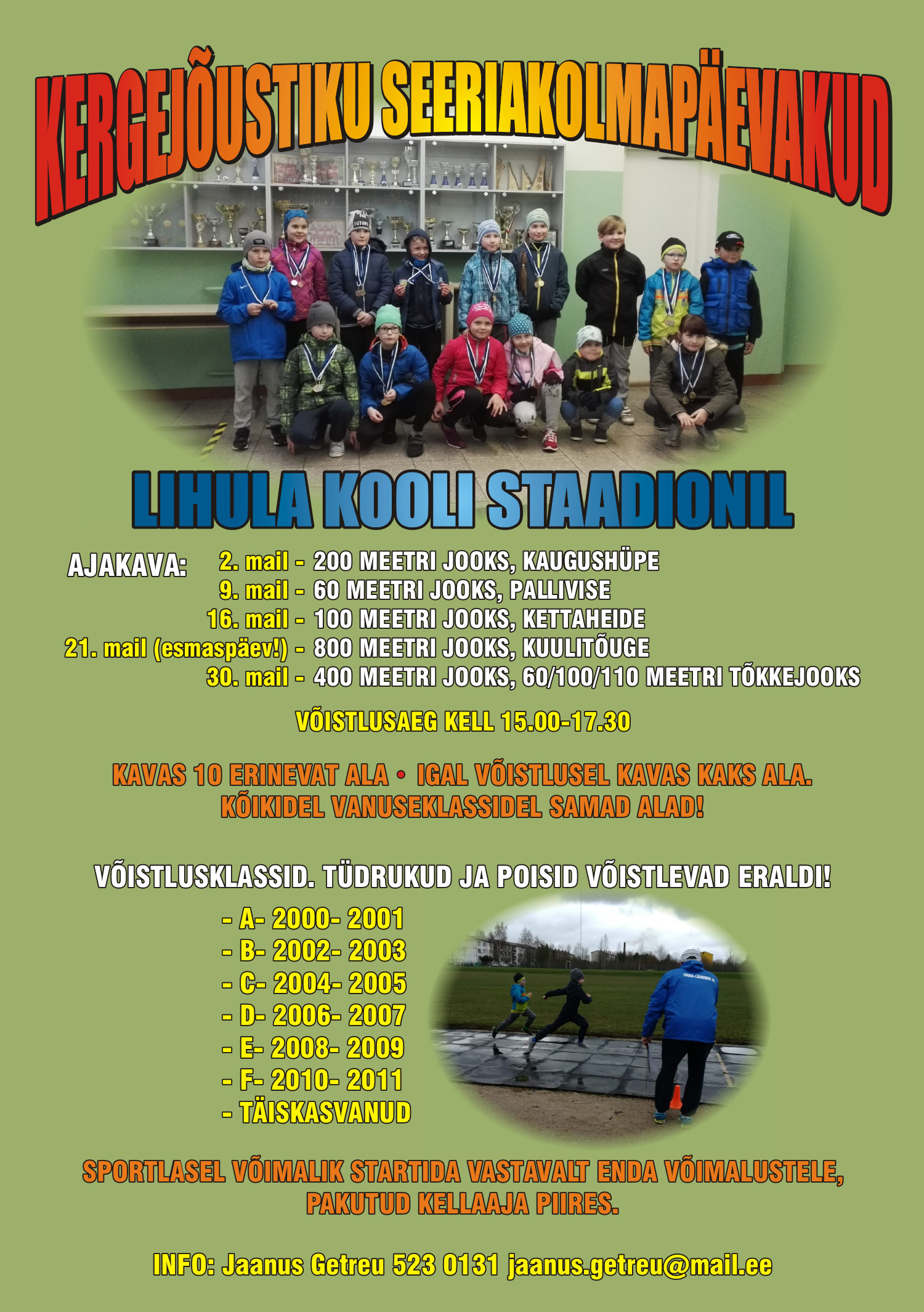 Kevadine koolivaheaeg on kohe-kohe algamas. Koolivaheajal on kõik spordilapsed oodatud Lihula staadionile sportima!!