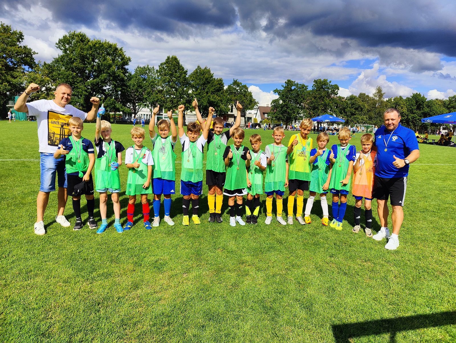 Jalgpallurite ja korvpallurite ühistiim peale esimest turniiri.