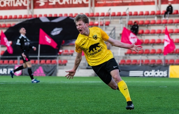 Virgo tähistamas oma esimest väravat Premium Liigas.